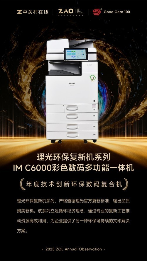 2025年度百大优秀科技产物GG100:理光环保复新机系列IMC6000彩色数码多功能一体机